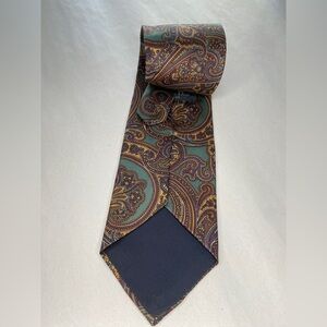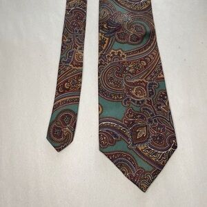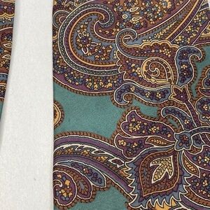 Gorgeous paisley tie with teal or turquoise green background. Versatile color palette for a wide variety of dress shirts.