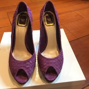Christian Dior peep toe platform shoes. Great condition. Suede Embossed snake.