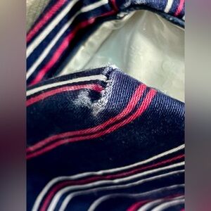 RARE & VINTAGE” used. In good condition. Navy blue/ pink & white stripes. With gold hardware. Zipper & plastic in case pockets are intact. Inside has monogram brand name all over. No discoloration of the plastic. No tears, no stains. Some present fading usage on the corners. But no tears/ no damages on the fabric. Plz reflect on photo’s for conditions.