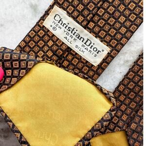 Christian Dior vintage retro 100% silk geometric square slim tie necktie 3” w