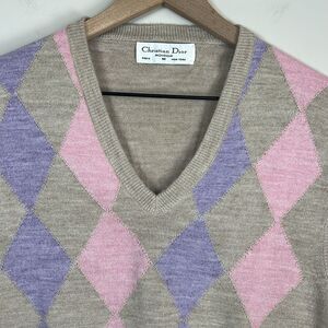 Christian Dior Argyle Sweater Vest Vintage 80s Preppy Size Men's Medium