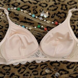 Christian Dior VTG 70s 80s Ivory Satin Lace Wireless Padded Bra 36B