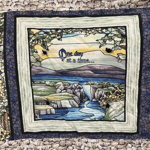 This quilt features a serene nature design with inspirational Bible verses, offering both comfort and a meaningful decorative element for your home.
