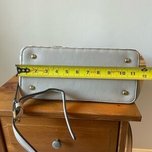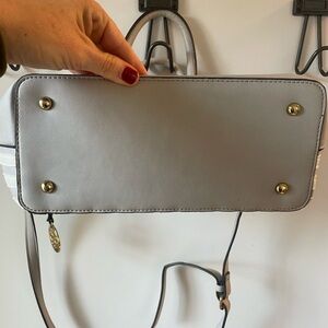 Christian LaCroix, women’s handbag with shoulder strap, gray and white stripe