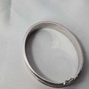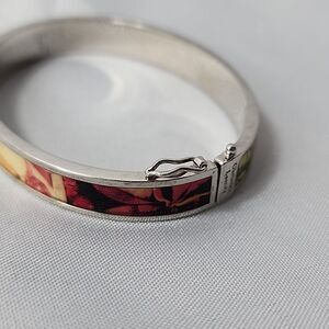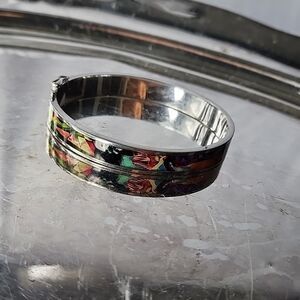 Colorful oval shaped bangle bracelet with safety close. Surface scratches on silver tone metal. Great addition to your stack or wear alone