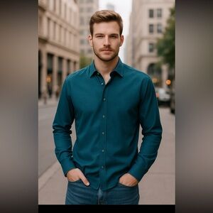 Sophisticated deep teal shirt with button-down design. Ideal for casual outings. Crafted for comfort and style.