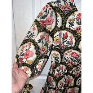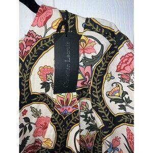 Christian Lacroix Dress Womens M Mini Flare Tie Back Floral Puff Sleeve New