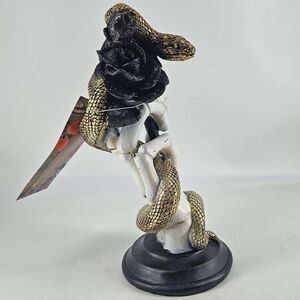 Christian Lacroix Halloween skeleton hand holding gold snake n rose figurine