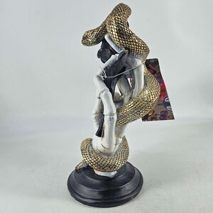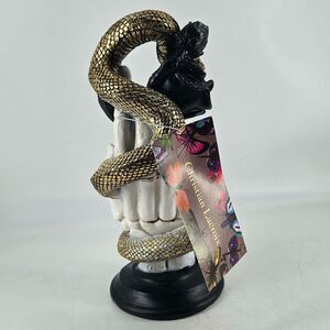 Christian Lacroix Halloween skeleton hand holding gold snake n rose figurine. Measures about 10" T, 4" X 3.5". New.