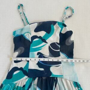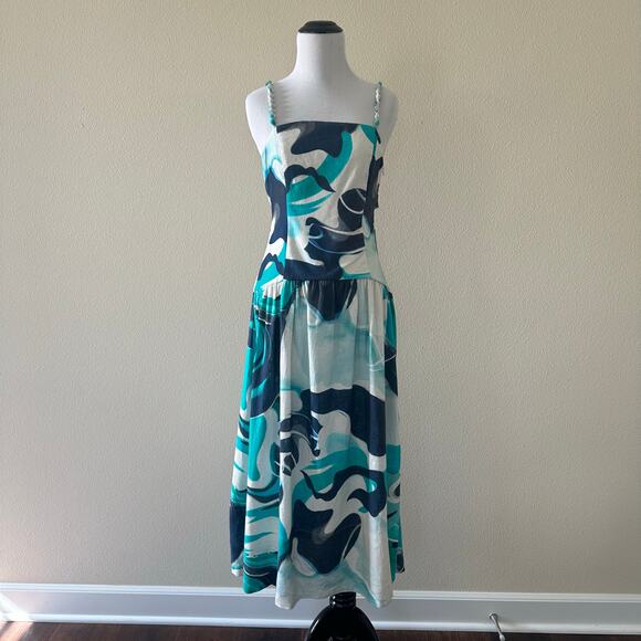 Christian Lacroix Linen Cotton Blue Organic Pattern Summer Midi Dress XS NWT