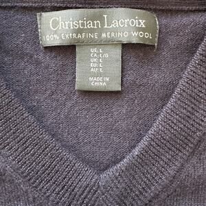 Christian Lacroix Men's 100% Fine Merino Wool Navy V-Neck Sweater, Size L, EUC