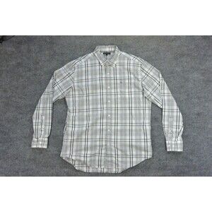 Christian Lacroix Mens Large Gray White Plaid Long Sleeve Button Front Shirt