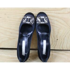 Christian Lacroix Shoes Womens 8 Black Satin Jewel Kitten Heel Slip On Vintage