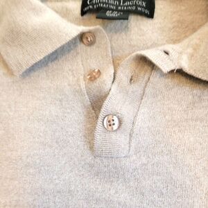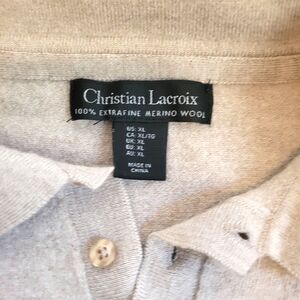 Christian Lacroix Sweater Mens XL Merino Wool Gray Collared 3 Button Accademia