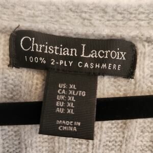 This Christian Lacroix women's size XL grey long sleeve sweater is 100% 2-ply cashmere and new without tags. In a beautiful grey, this sweater is beyond soft. Slightly oversized, there is a good amount of stretch to this light weight fabric that is perfect all year round.