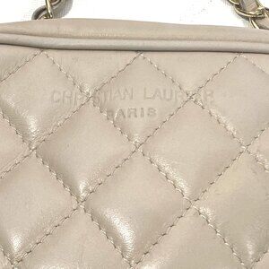 The Christian Laurier Faye Nude Crossbody Bag is an elegant choice for carrying essentials. Its quilted leather design pairs seamlessly with a gold chain strap, offering both style and functionality. This versatile bag complements various outfits and occasions, adding a touch of sophistication to your look.