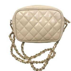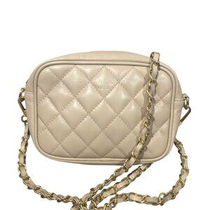 Christian Laurier Faye Nude Quilted Leather Crossbody Bag With Gold Chain Strap