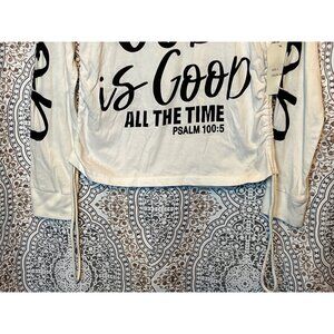 Christian Long Sleeve Top With Bible Verses God Is Good Psalm 100:5 & Matthew 19