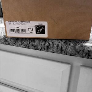 New. In box. 37.5 (7.5) Christian louboutin high heels. Red bottom. Black / pewter. Sparkly. Sure to add style and class to whatever your look may be.