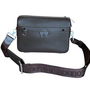 Christian Louboutin 3225098 Ruisbuddy Zipped Leather Crossbody Bag Cosme Brown