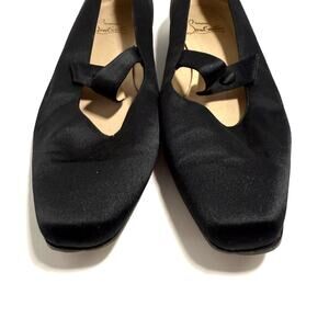 Christian Louboutin 40 Vintage Black Satin Mary Jane Evening Flats *flaw