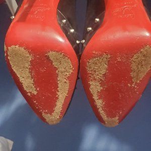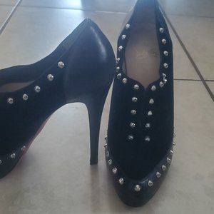 Suede is in perfect condition, no studs are missing or loose, heels have minor/typical wear and in very good condition