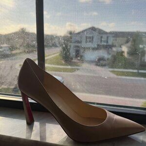 Beautiful lightly used Christian Louboutin Condora 85mm pumps in the Blush color. Light wear on the tips of each, but only worn less than 4 times. Happy to send more pictures or longer video if you would like!