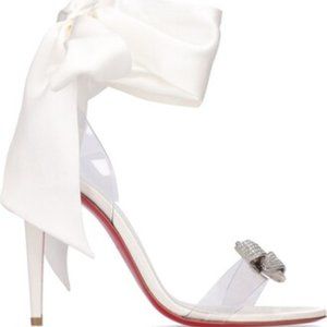Christian Louboutin ASTRINODO Crystal Bow Silk Tie PVC Heels Sandals Shoes