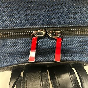 Elevate your style with this sleek black and blue unisex backpack by Christian Louboutin. Perfect for daily use, it combines functionality with a modern design. Beautiful studded accents and leather bottom. Lots of room and in like new condition. No call outs.