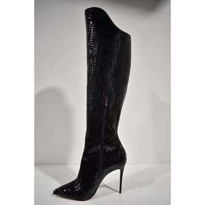 Christian Louboutin Alta Botta 100 Black Patent Bird Knee High Heel Boot 37.5
