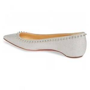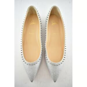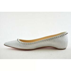 Christian Louboutin Anjalina Flat Silver Glitter Spike Pointed Ballerina 37.5
