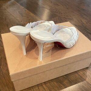 Christian Louboutin Apostropha 80mm White Patent Leather/PVC mules Sz. 39 BNIB