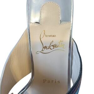 Christian Louboutin Arkenmule Rainbow Silver Block Heel Sandal 37.5