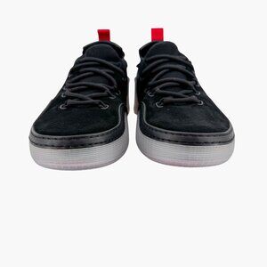 Shoes show signs of handling/storage, including minor marks on suede uppers and light scuffs on outsoles. Otherwise in like-new condition.