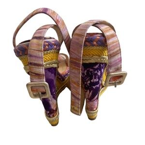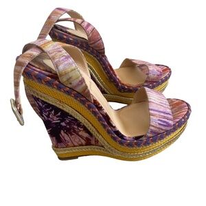 Christian Louboutin Bazin Cataclou purple pink tie dye wedge 5" heel 38 8