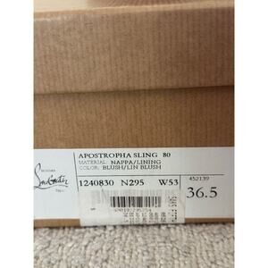 Elegant beige slingback heels. Signature red sole. Pointed toe design.