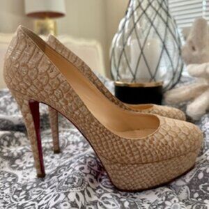 Christian Louboutin Bianca Snake Print Cork Platform Heel Stiletto Pumps Size 37