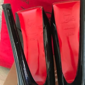 Only worn 1x. Protected red bottom with authentic red no slip that matches Christian Louboutin red bottom color perfectly. Bottoms will not get scrapped up and will always keep their red. Bought at Christian Louboutin store in Beverly Hills, CA.