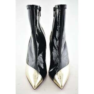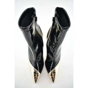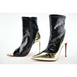 Christian Louboutin Bibooty 100 Black Platine Gold Patent Ankle Heel Boot 37