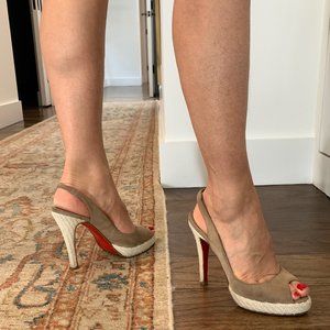 Christian Louboutin Biege Suede Open Toe Open Back Platform Stiletto Pumps