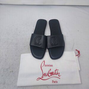 Christian Louboutin Black Flat CL Logo Mule Slide Sandal