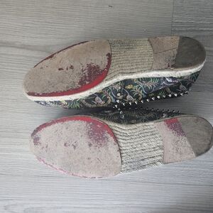 Elegant black loafers with floral design. Features studded detailing. Perfect for casual wear.