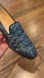 Crafted in Italy, these shoes are such a fun way to spice up an every day outfit. These have been worn and loved, and it shows by glitter missing in some areas (see pictures for examples) with that being said, you cannot tell from far away, you really have to be up close and personal to see the missing glitter. Despite this, there is still more life in them. I had a cobbler in NYC switch the red leather under the balls of the feet to a rubber for more traction. There is also a small protector on the heel to keep them in the best shape possible. These have been kept in the original dust bags (1 for each shoe) but the original box is missing, as I stored them in a plastic box from the Container Store. I hope these fun shoes find a great new home!