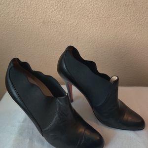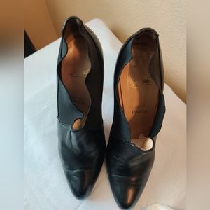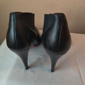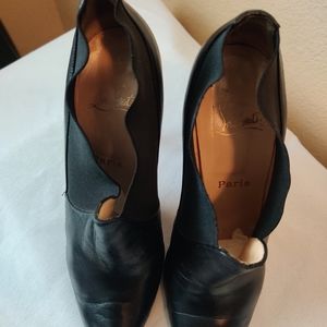 Christian Louboutin Black Leather Booties with elastic on sides. There is sole protection on the bottom of shoes. Some signs of minor wear but are in great condition. Please view photos for your expectations.