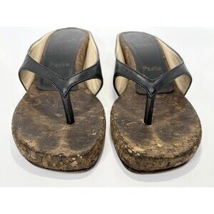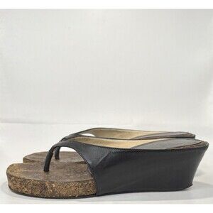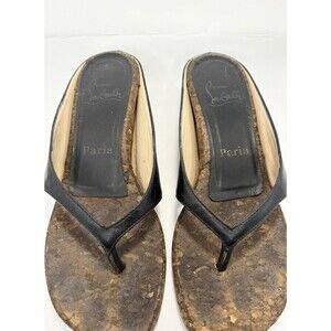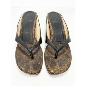 Christian Louboutin Black Leather & Cork Thong Wedge Sandals Sz Eu 36.5 6.5