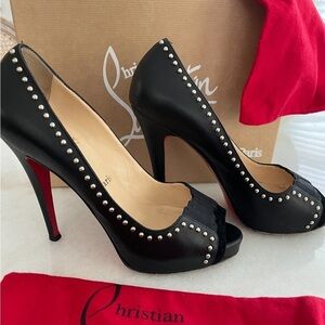 Christian Louboutin- Black Leather Peep Toe Studded Heels