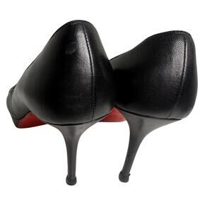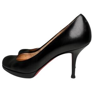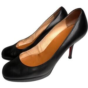 Christian Louboutin Black Leather Platform Simple Pump US 7 EU 37 Red Bottoms Quiet Luxury Designer Made In Italy Career Minimalst