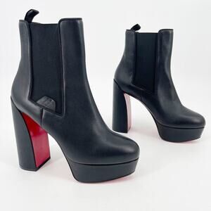 Christian Louboutin Black Movidastic 130 Leather Platform Chelsea Boot EU 39.5