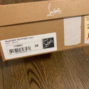 Christian Louboutin Black Patent Heels - size 38 in original box and with original sleeve. Very lightly worn.