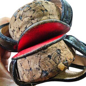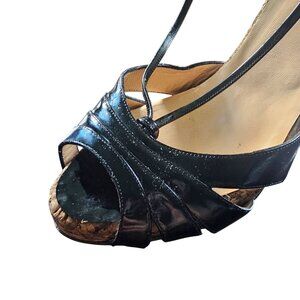 Christian Louboutin Black Patent Leather Cork Peep-Toe Stilettos Heels size 38.5